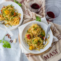 This is a vegan dish, but if you like the idea, sprinkle the pasta with grated cheese: Pecorino Romano, Parmigiano Reggiano or, even better, an aged salted ricotta, as the ones you can find in Puglia or Sicily.